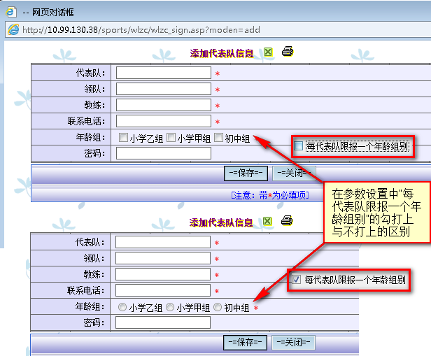 1、在系统设置之“比赛杂项设置中”开启中“启用代表队网络注册功能”