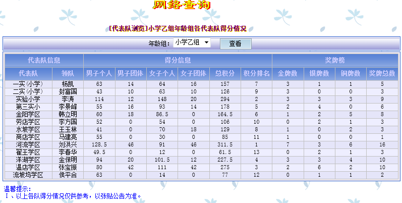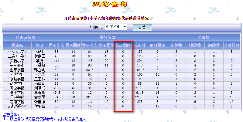 当参赛项目中无混合项目时: