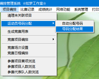 第二步:进入“运动员号码分配结果”模块,在相应的年龄组与代表队下输入运动员的编号。