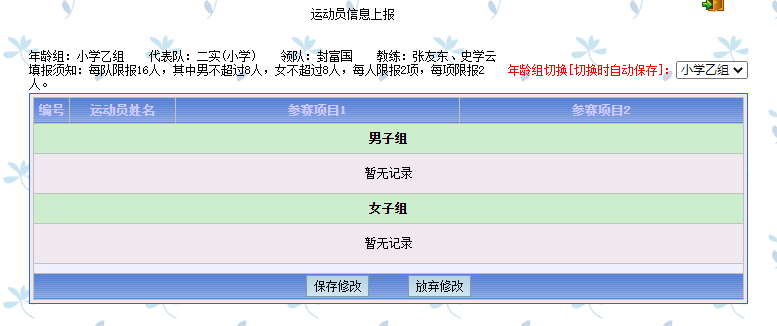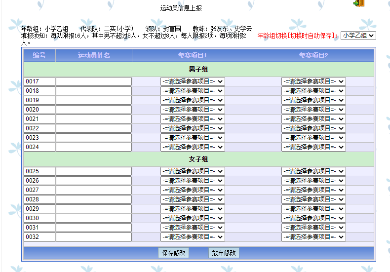 网络报名进去后没有填写运动员信息的相应位置