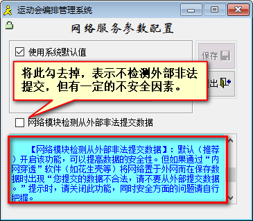 三、在“网络服务参数配置”模块中将“检测”功能关闭。