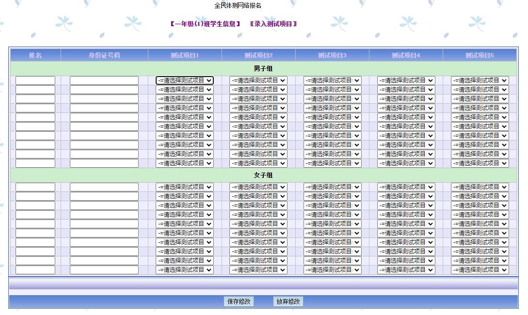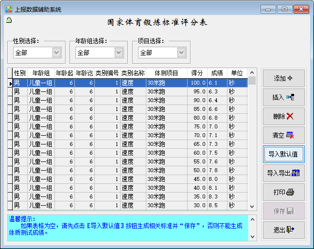当各代表队信息录入完毕后,可进入“全民体测成绩录入”模块查看各代表队的录入情况(注意:成绩录入不在本模块中进行)