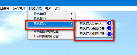 总体步骤:设置参数→网络报名 →项目编排→网络登分→生成得分