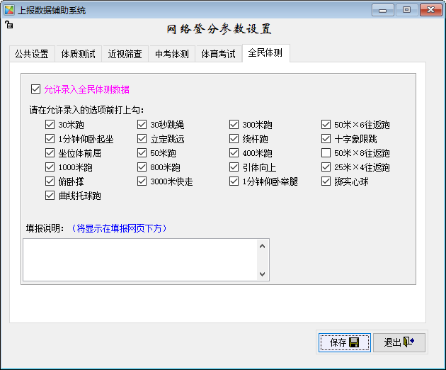 1、建议使用“全民体测”模块作为达标赛的核心支持模块,“体质测试”、“中考体测”、“体育考试”等模块也行,酌情选取。