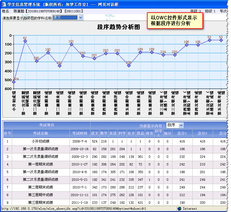 点击学生信息查询,并输入帐号与密码进入系统点击右侧“分析”之“查看”超链接显示趋势图及相关数据上图的两种显示方式可在“网络查询参数设置”中进行相应设置