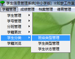 3、选择“学籍管理”--〉“学生分类”--〉“班级类型管理”