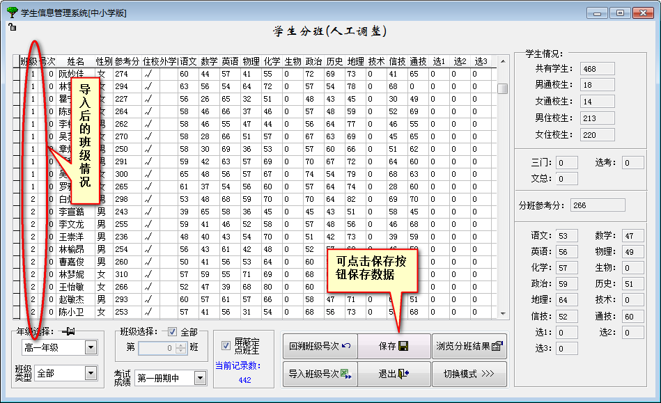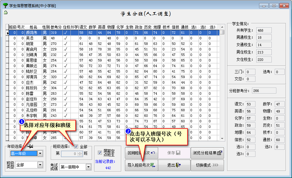 1、选择“学籍管理”--〉“分班管理”--〉“手动调整”