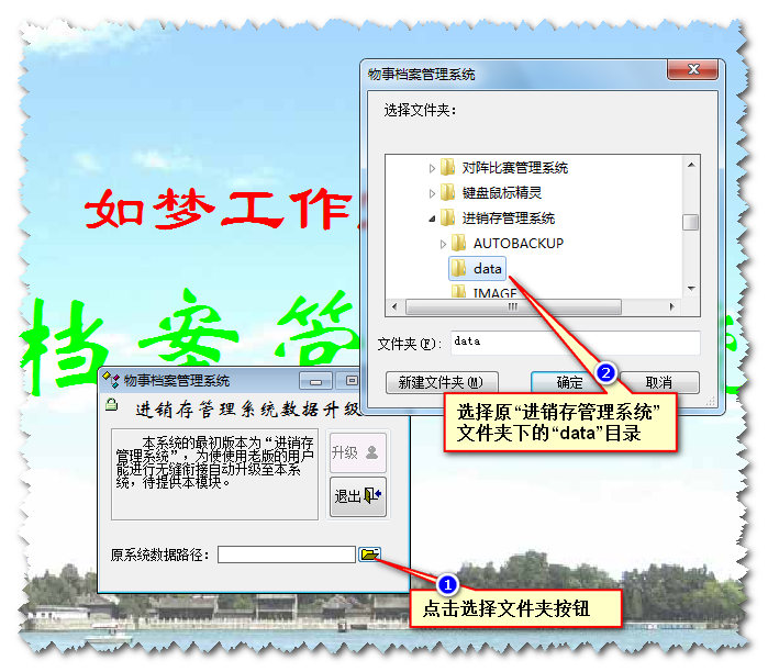 3、在“数据升级”模块中设置原系统数据路径为原进销存管理系统中的DATA目录