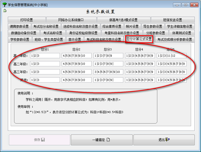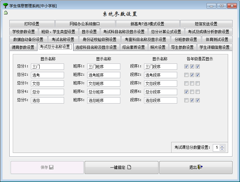 当在“系统设置”模块中设置或更新总分公式后,须在“成绩登录”模块中重新保存相关成绩,总分才会发生变化。也就是说“成绩浏览”中看到的总分数据,实际上是在“成绩登录”模块中生成的。而“成绩浏览”模块只起浏览作用而不会重新计算总分。